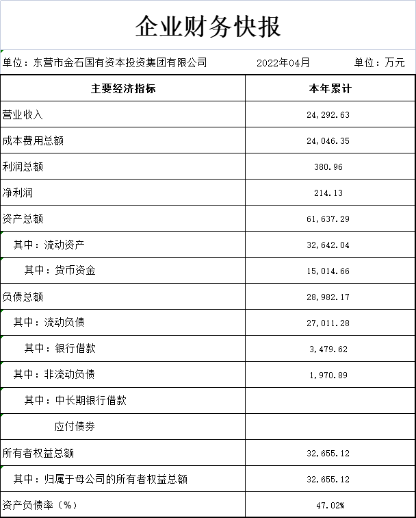 2022年04月企业财务快报